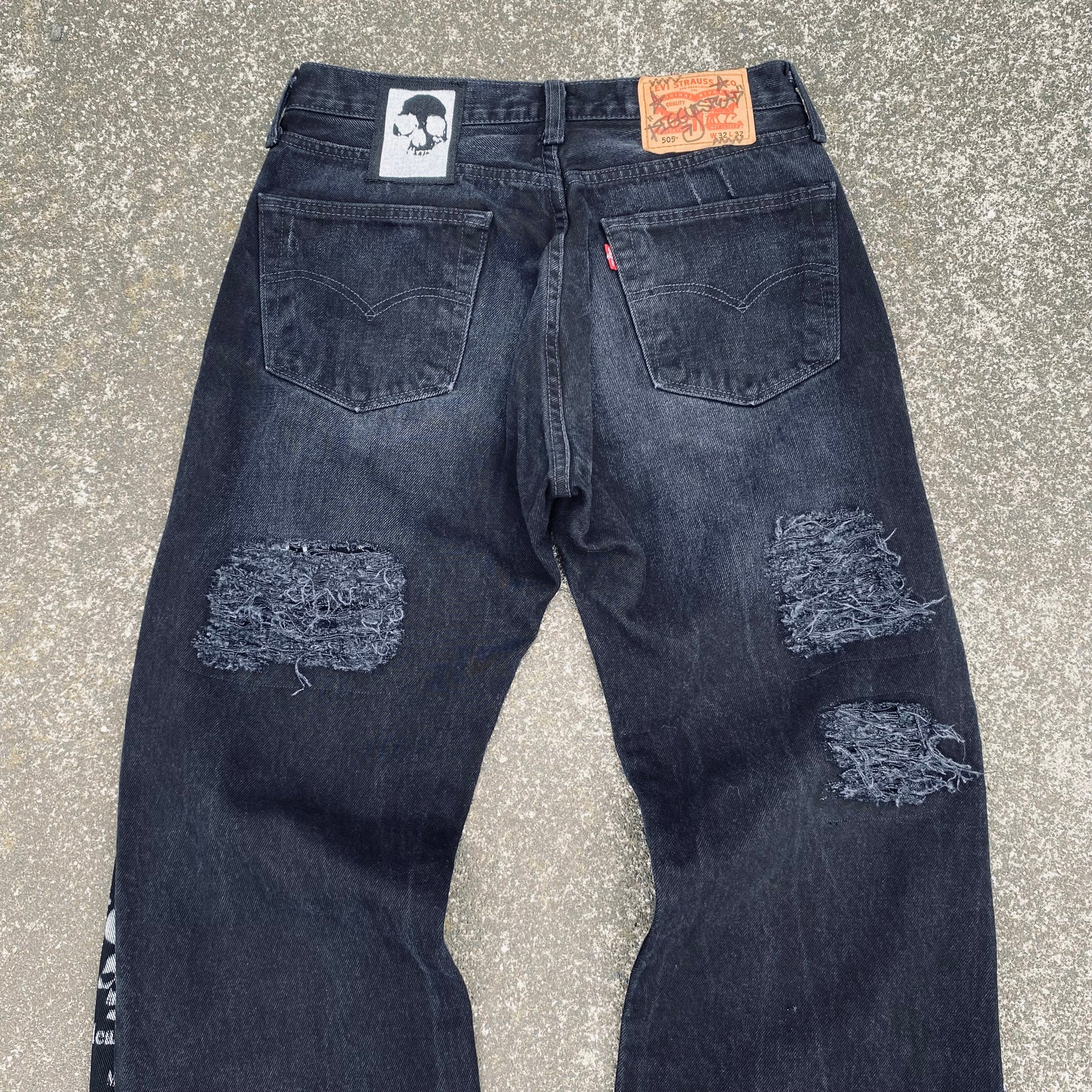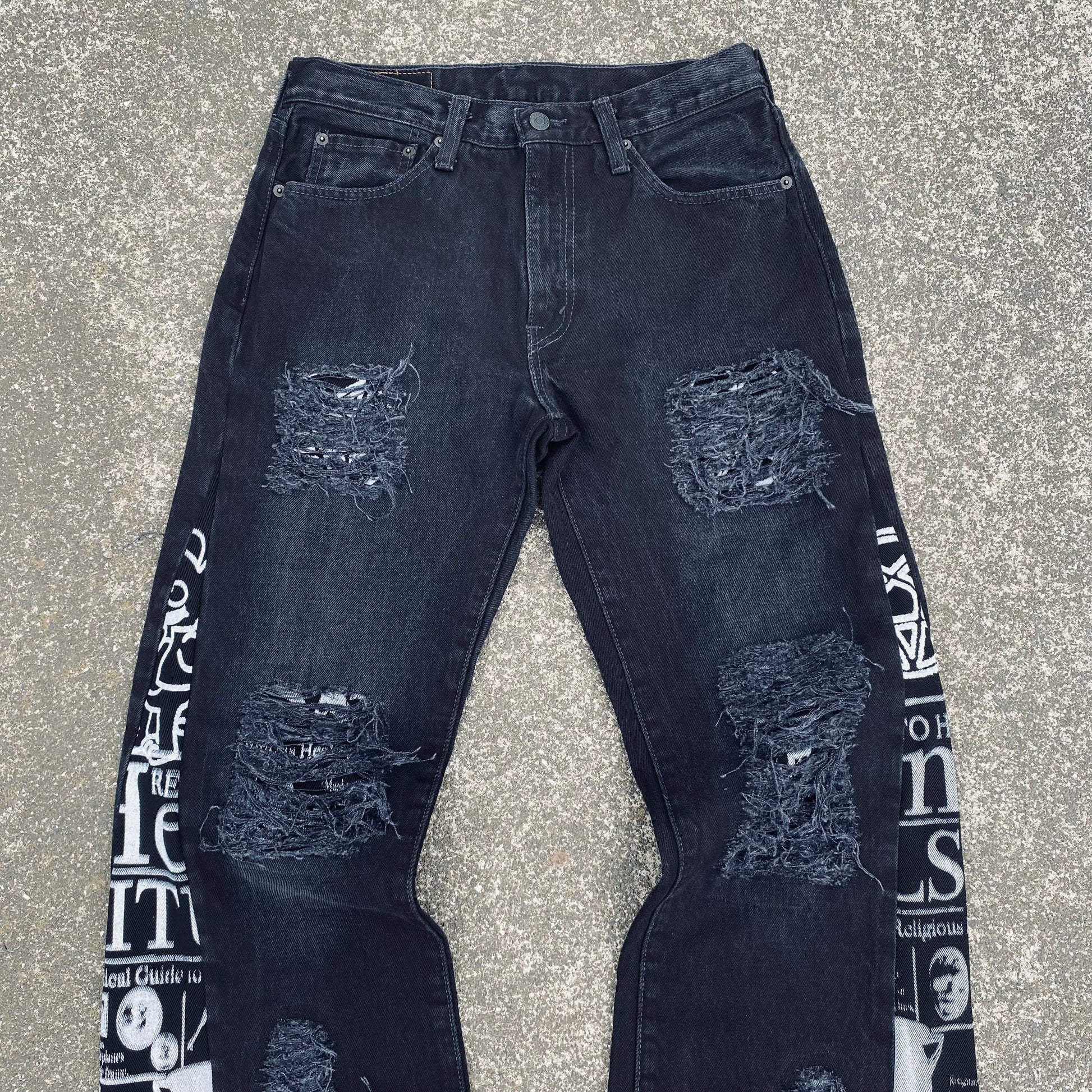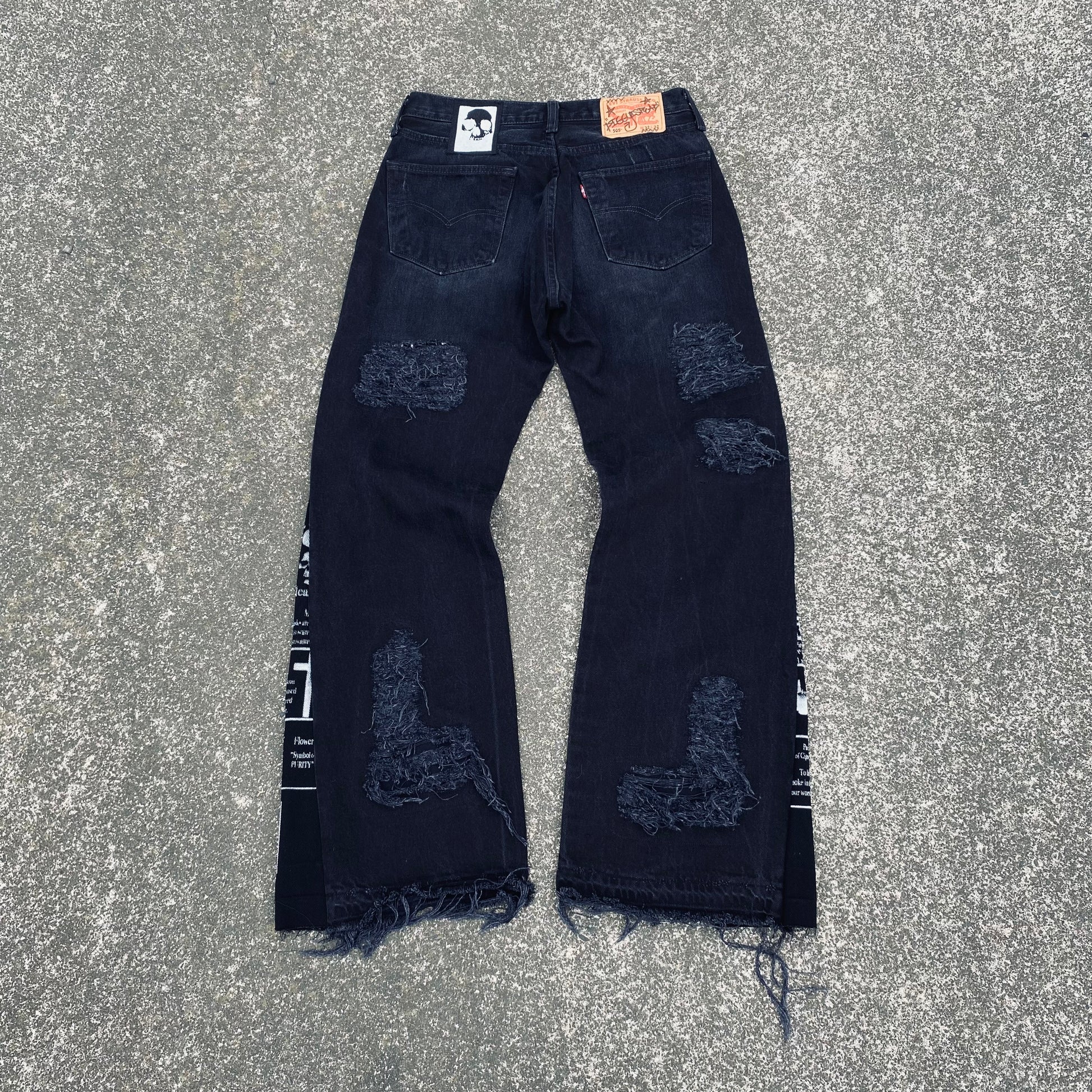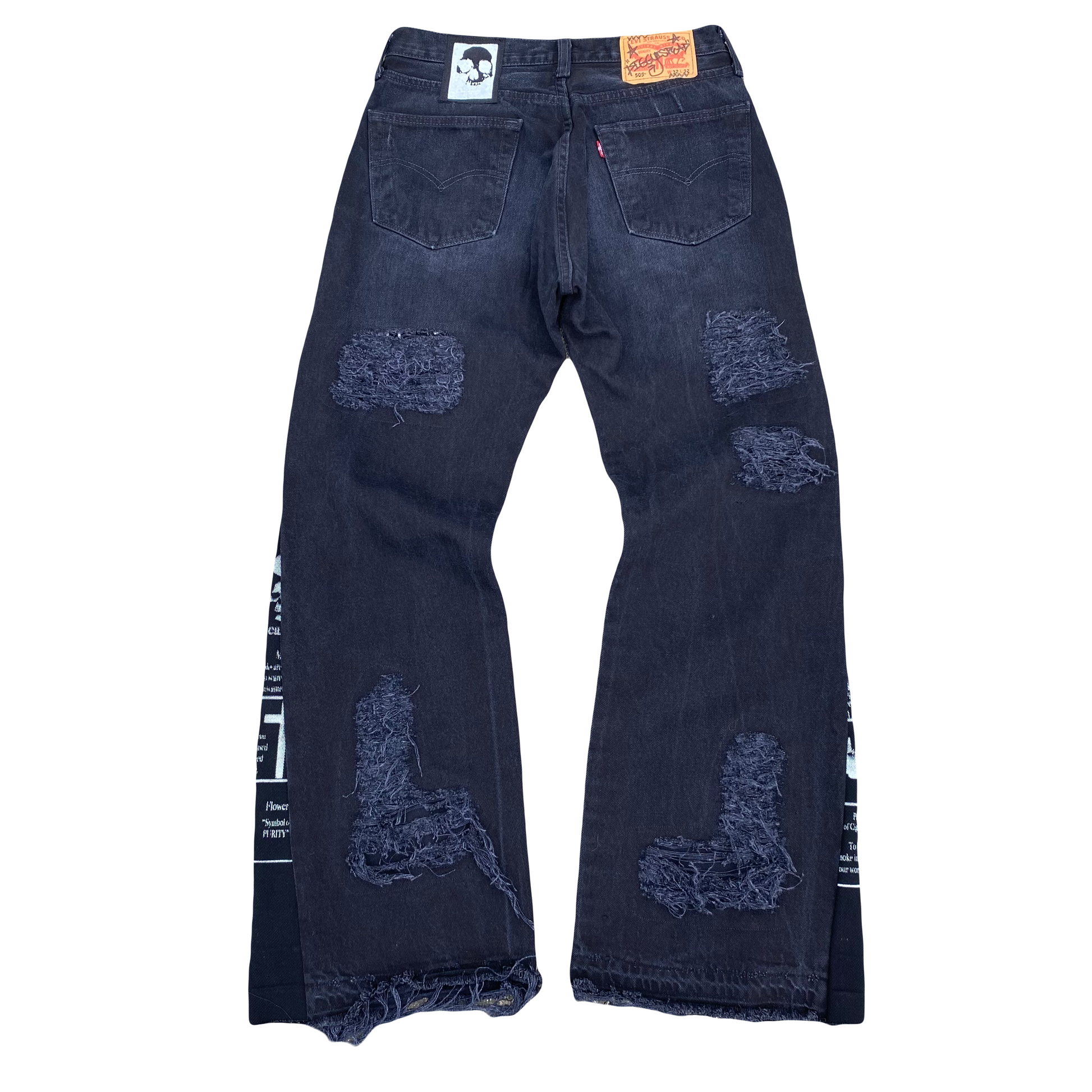 These Jeans were Hand screenprinted, Flared and patched by Diggy