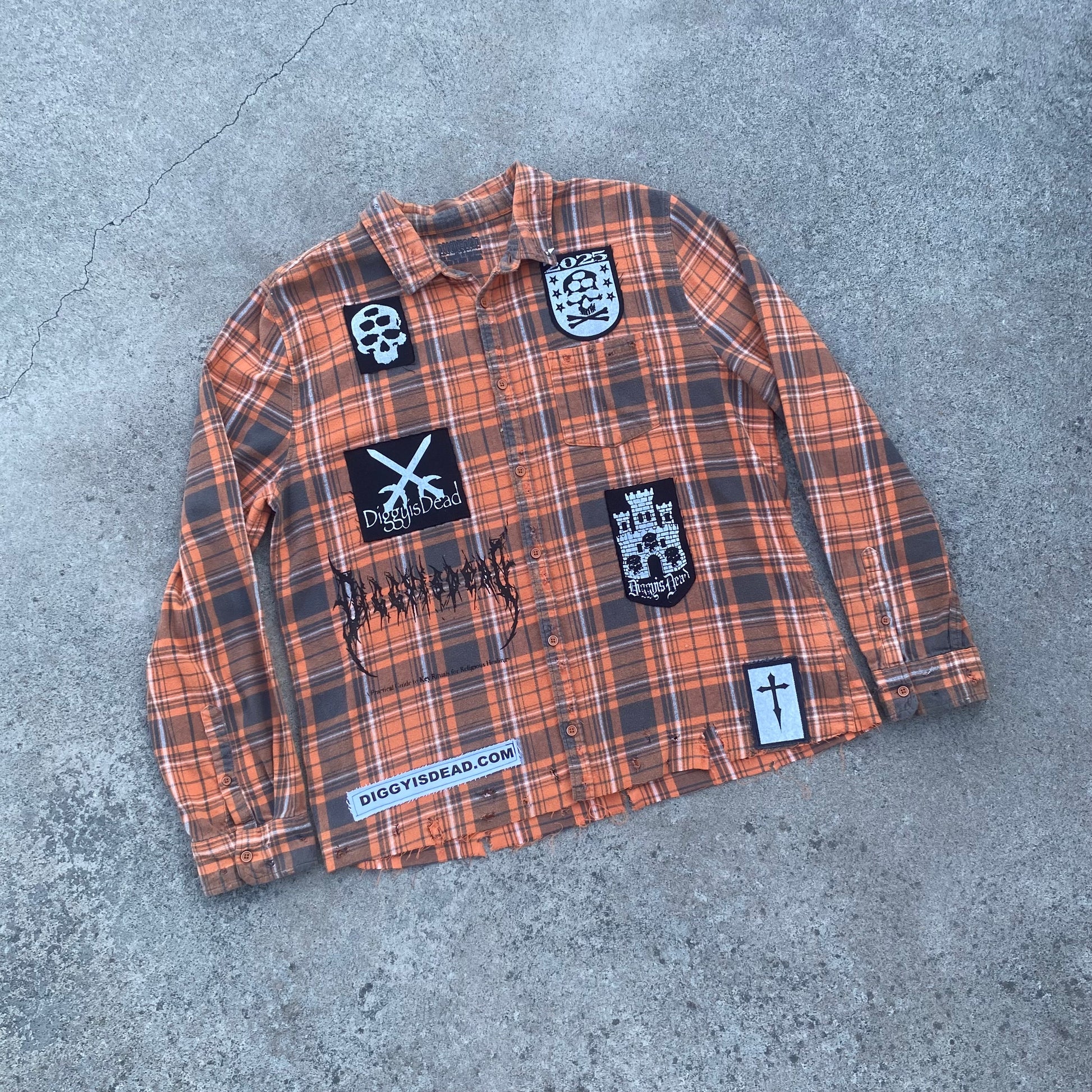 This Garment was hand crafted, Patched, Screen Printed, Disassembled and Sewn by Diggy.